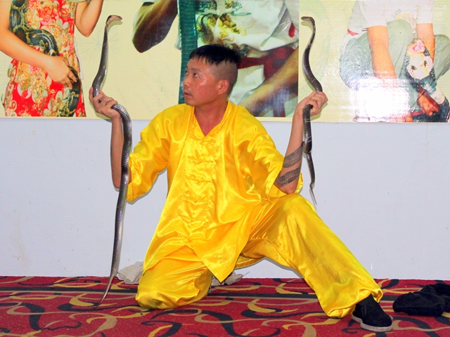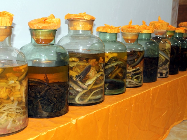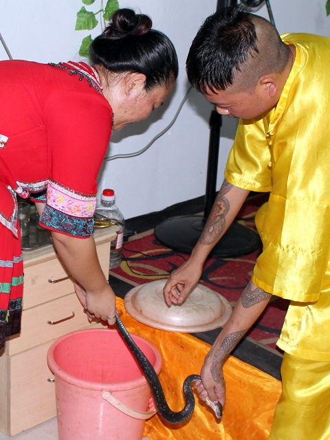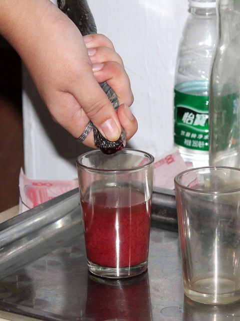 Нам же дали попробовать напиток молодости, созданный из крови гадюки и водки. Перед приготовлением экзотического коктейля прямо у нас на глазах бедной змее отрезали голову. Зрелище не для слабонервных...